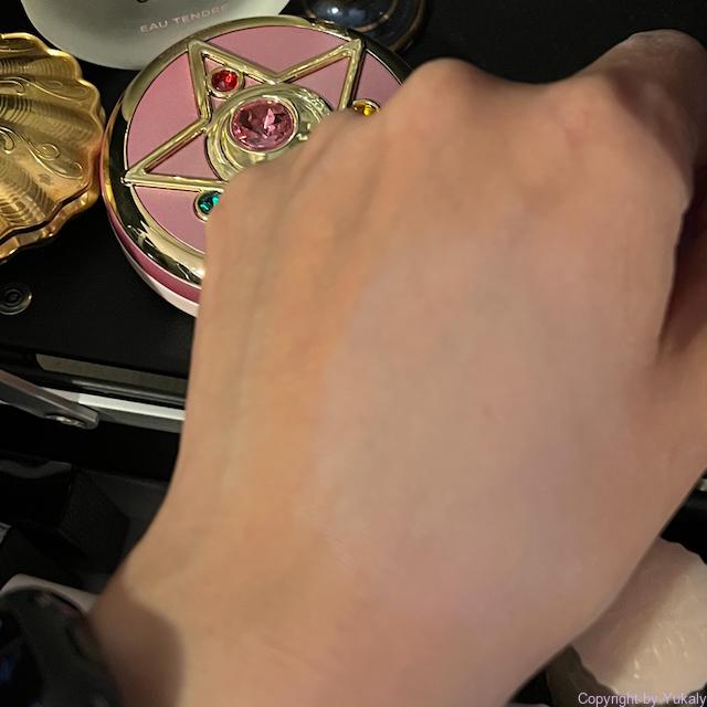 手の甲に塗ってみたんですが、私にはちょっと明るい感じですな。