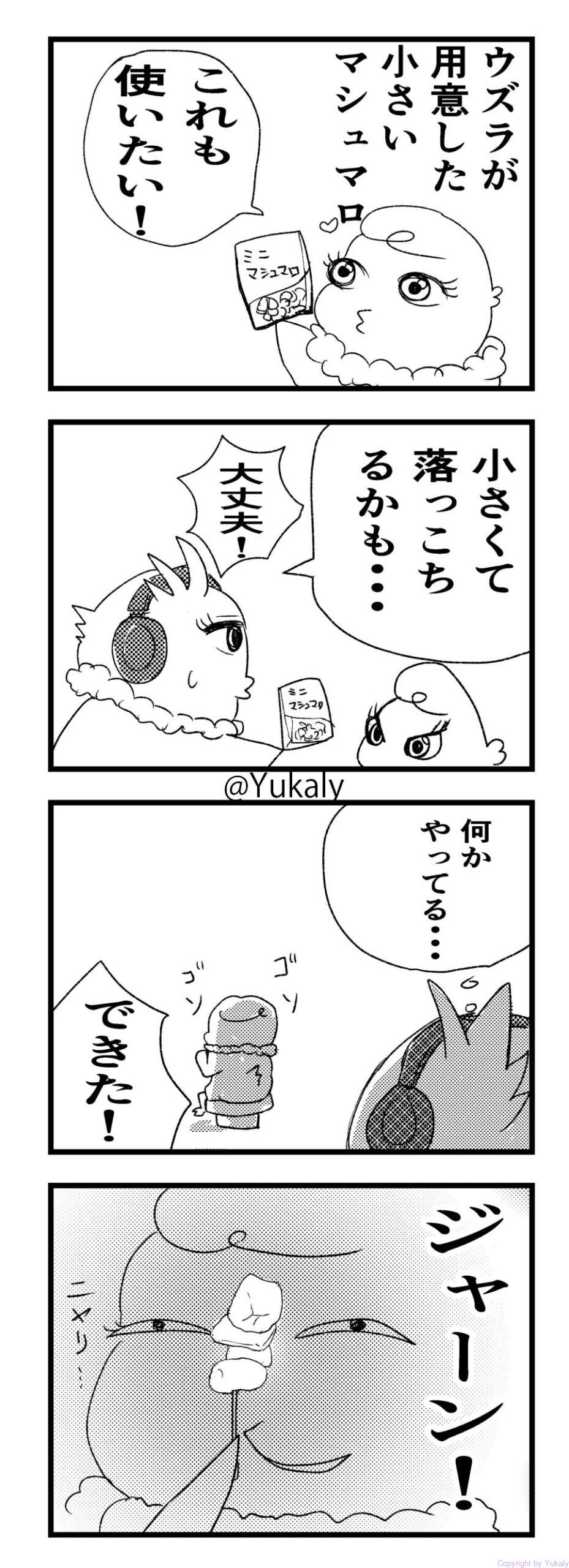 ( • •)UZURA pulls out a small marshmallow he has prepared.